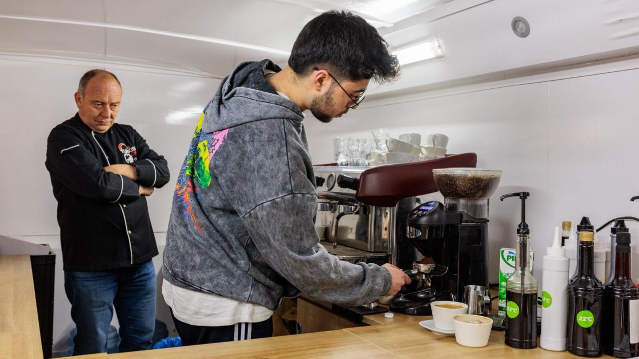 Ücretsiz olarak sunulan bu kursta, Turan, mobil araçta bulunan ekipmanlarla baristalık mesleğinin inceliklerini uygulamalı olarak gösterdi.