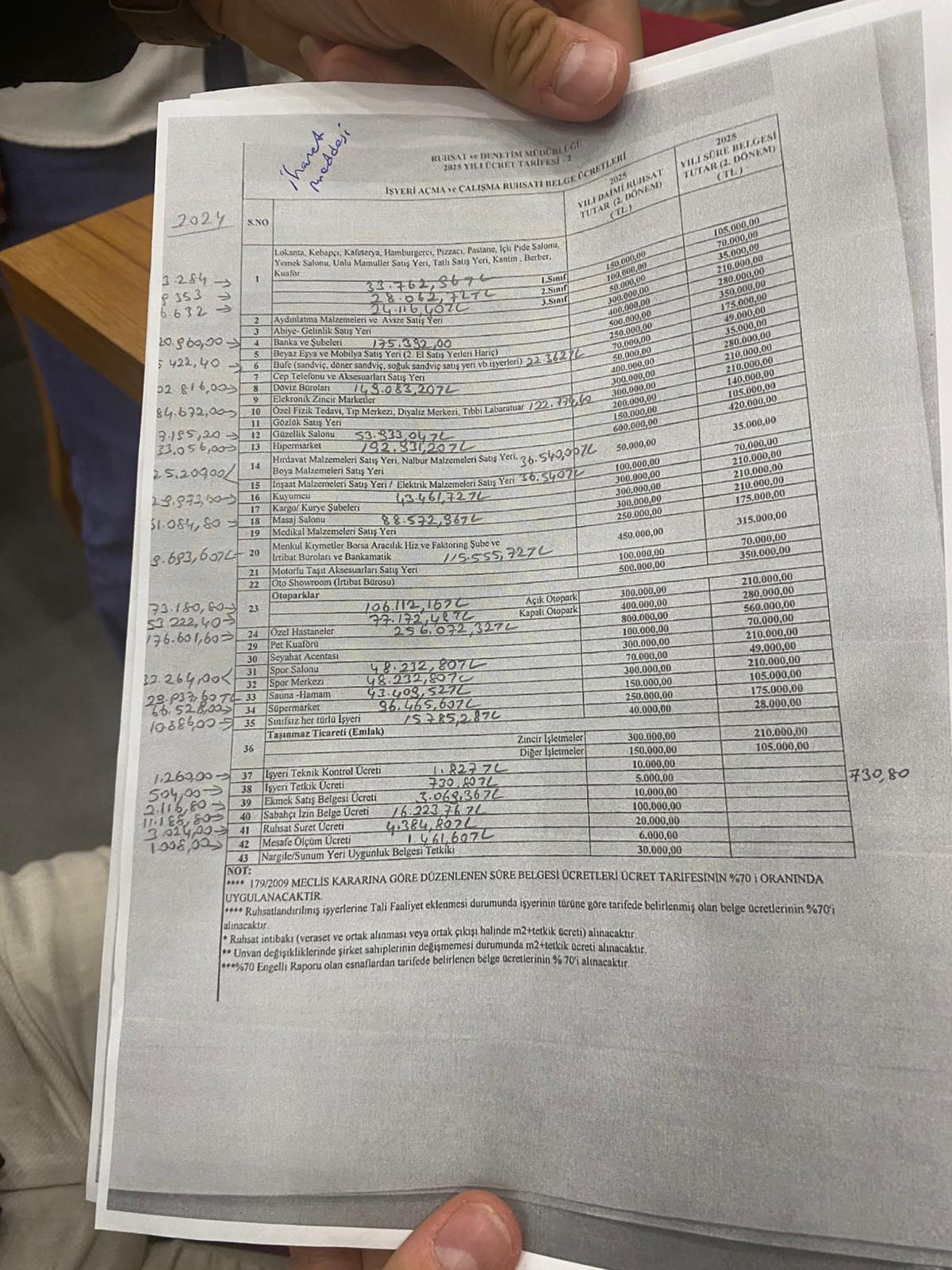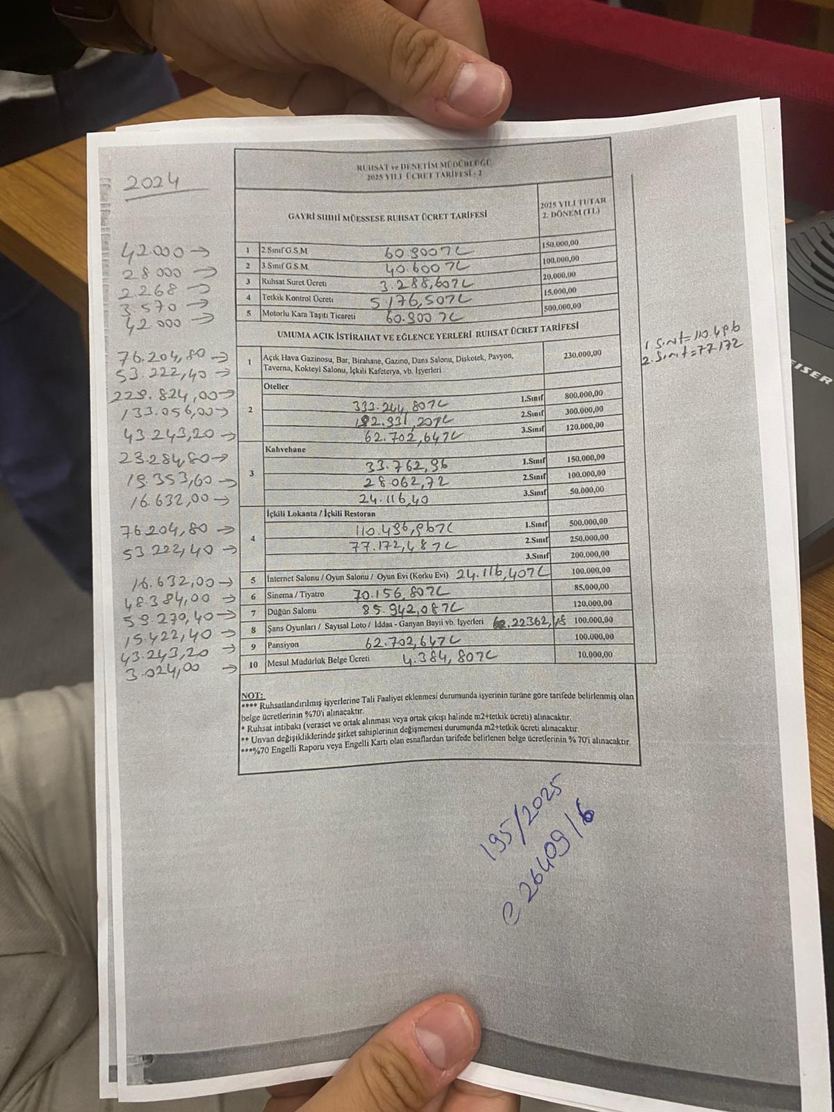 Öte yandan kahvehanelerin 2024 yılındaki ruhsat ücreti 23 bin TL iken, yeni düzenleme ile 150 bin TL oldu. 2. Sınıf kahvehane 19 bin TL’den 100 bin TL. 3 sınıf 16 bin TL iken 50 bin TL olarak belirlendi.