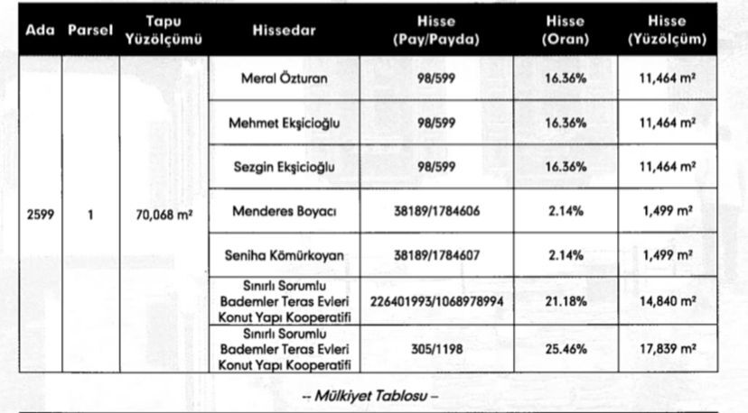 Parsel sahipleri arasında şu kişiler yer aldı;