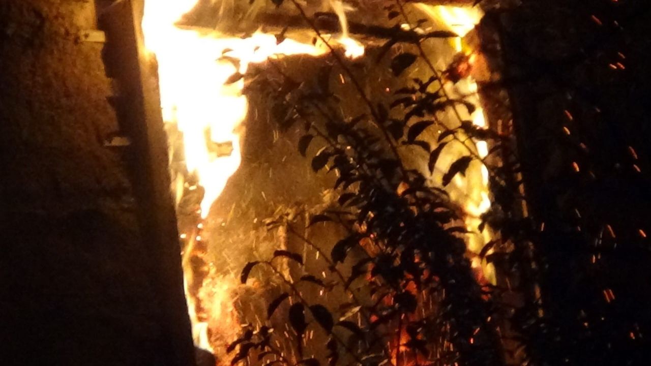 Yaklaşık bin saman balyasının kül olduğu yangında, ev tamamen kullanılamaz hale geldi. Yangının çıkış nedenine ilişkin soruşturma başlatıldı.