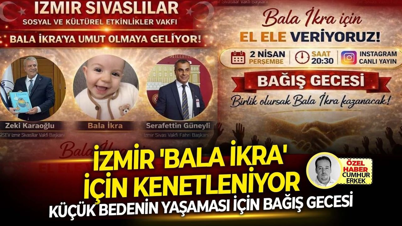 SON MÜHÜR/Cumhur Erkek-Küçük bir bedenin büyük mücadelesine nefes olmak için İzmir Sivaslılar Vakfı öncülüğünde dev bir dayanışma hareketi başlıyor. Gözlerindeki ışığın sönmemesi için zamana karşı yarışan Bala İkra için bu akşam "vicdan mesaisi" yapılacak. İzmir Sivaslılar Vakfı Başkanı Zeki Karaoğlu, tüm hayırseverleri bugün saat 20:30’da gerçekleşecek olan Instagram canlı yayınına davet ederek, insanlığın en saf haliyle el ele vermesi gerektiğini vurguladı.