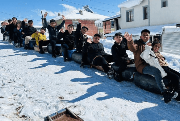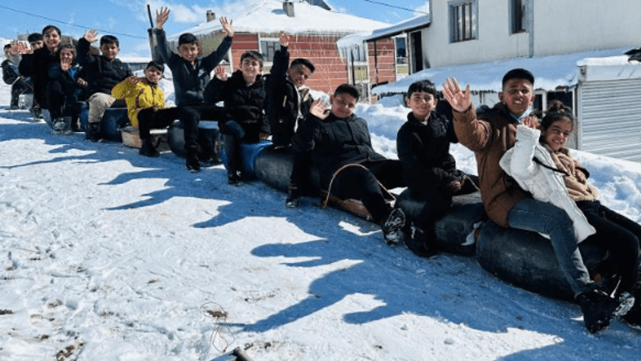 Hakkari'nin Yüksekova ilçesinde kar yağışını fırsata çeviren çocuklar, evlerinden getirdikleri poşet, tahta, tepsi ve bidonlarla kayarak eğlenceli anlar yaşadı. Yüksekova'da hayatı olumsuz etkileyen kar yağışı, çocuklar için eğlenceye dönüştü. Hafta sonu tatilini değerlendiren çocuklar, güneşin açmasıyla birlikte kaymanın keyfini çıkardı. Evlerinden getirdikleri poşet, tahta, tepsi ve bidonlarla kayan çocuklar, yolları adeta buz pistine dönüştürdü.