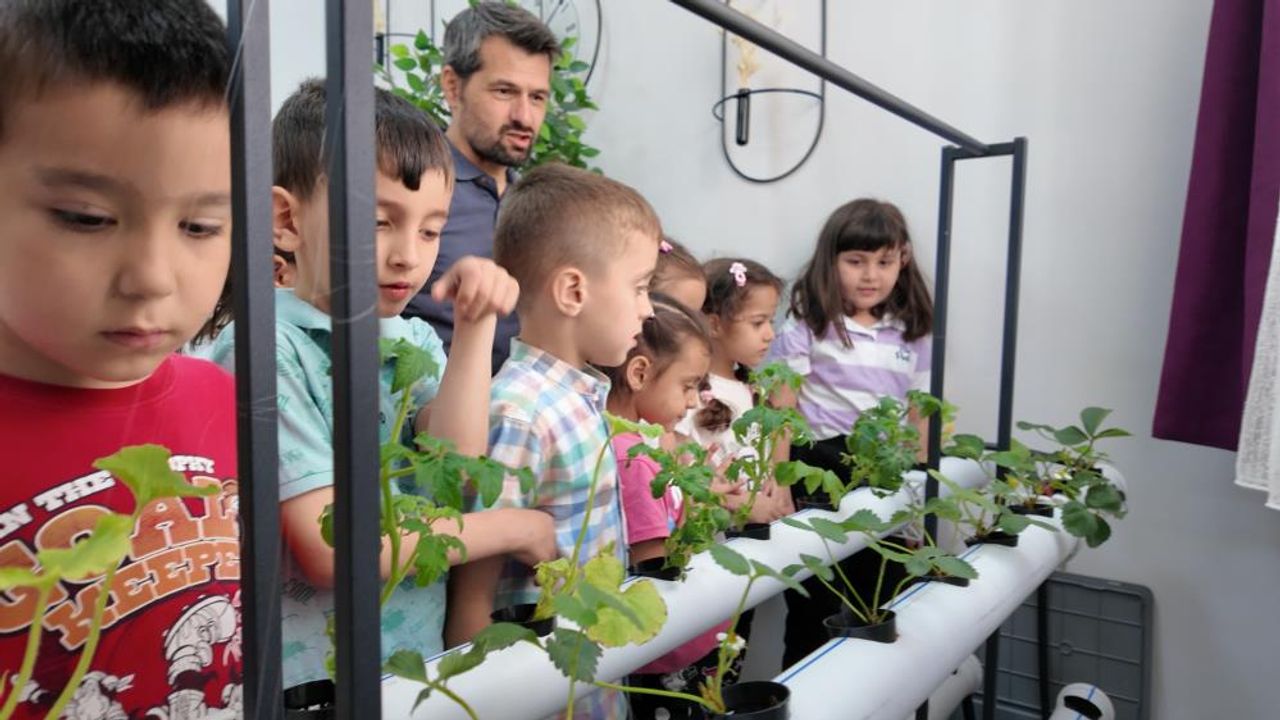 Manisa'nın Yunusemre ilçesinde yer alan Türk Kızılay İlkokulu bünyesindeki ana sınıfı öğrencileri, topraksız tarım yöntemi olan hidroponik sistemle sebze ve meyve üretimi gerçekleştiriyor. Öğrenciler, ürünlerin dikiminden hasadına kadar tüm sürece aktif olarak katılarak hem üretim bilinci kazanıyor hem de sorumluluk alma, sabır gibi yaşam becerilerini geliştiriyor.