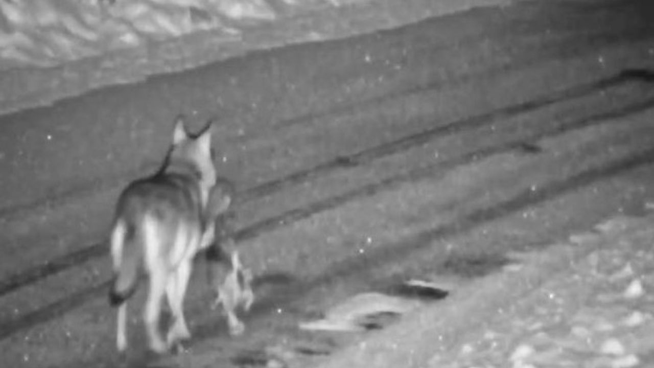 Gümüşhane’nin Kürtün ilçesi Özkürtün Beldesi’nde aç kalan kurtlar Süme Mahallesi’ne indi. Mahalle merkezine inen 2 kurt bölgede bir süre dolaştıktan sonra ormanlık alanda gözden kayboldu. Bir süre sonra tekrar ortaya çıkan kurtlardan bir tanesinin ağzında avladığı köpekle yol üzerinde yürüdüğü anlar ise bir iş yerinin güvenlik kameralarına yansıdı. Parçalanmış sokak köpeğini ağzında taşıyan kurt bir süre sonra karanlıkta gözden kayboldu.