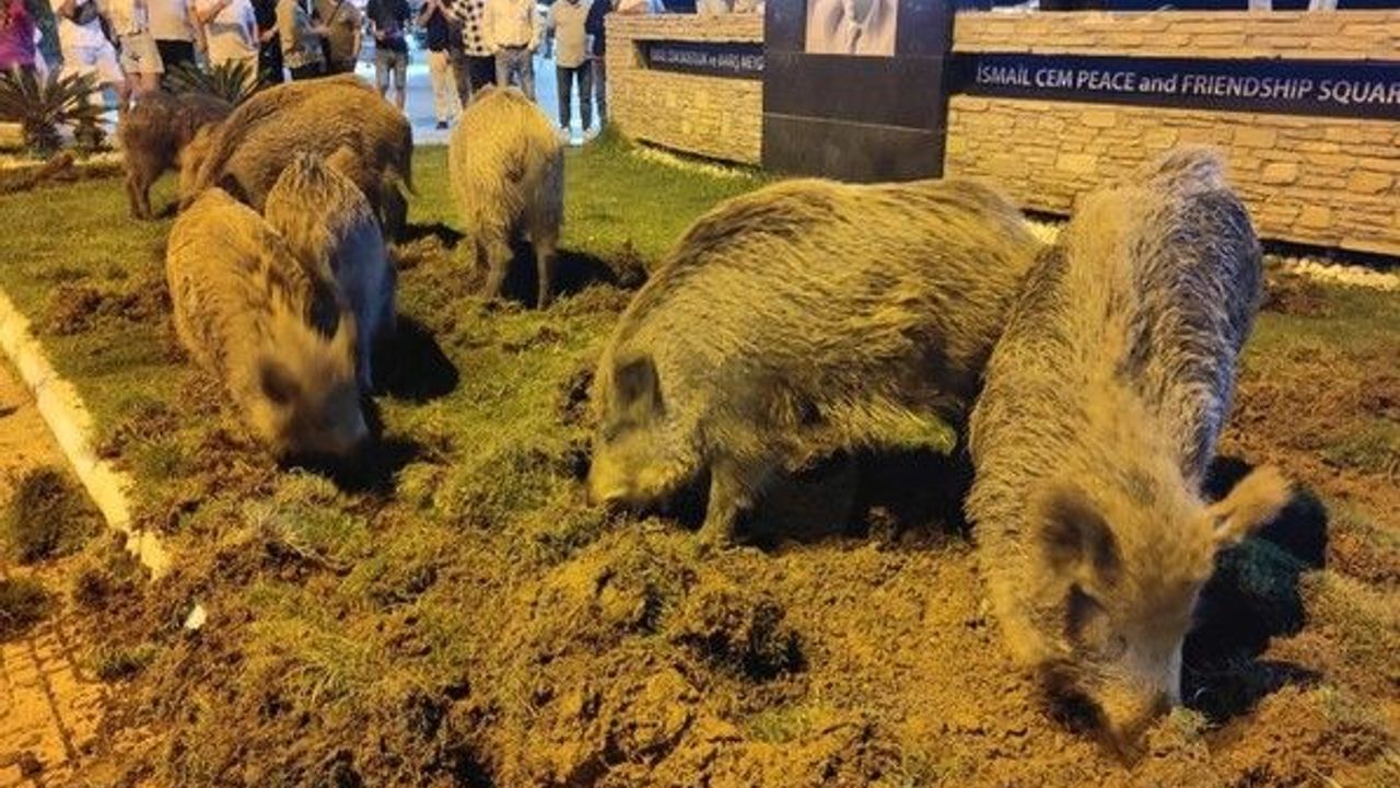 Aydın’ın turistik ilçesi Kuşadası’nda yaban domuzu sürüsü ilçe merkezine indi. Vatandaşlar, çarşıda dolaşan domuz sürüsünü cep telefonlarıyla görüntüledi. Görüntülerde yaban domuzlarının rahat tavırlarla sokak aralarında gezdiği ve çevredeki insanlara aldırış etmeden dolaştığı görülüyor.