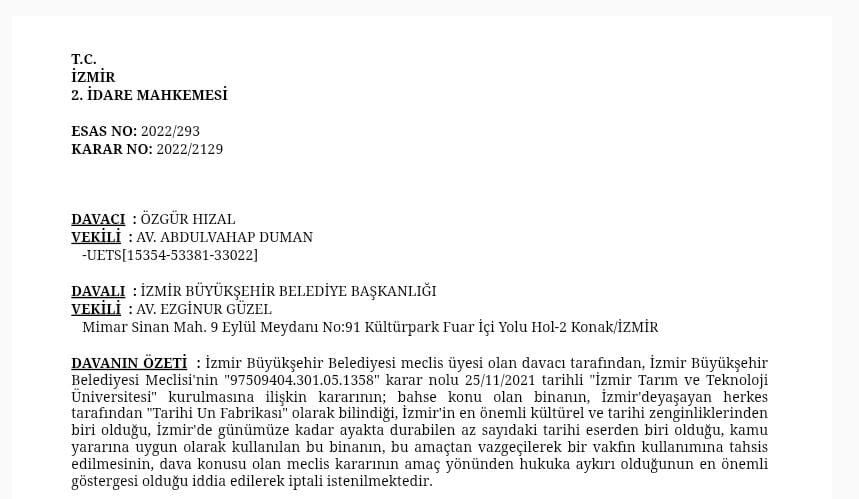 AK Parti Genel Sekreteri ve İzmir Milletvekili Eyyüp Kadir İnan, AK Parti Genel Sekreter Yardımcısı Av. Özgür HIZAL tarafından İzmir Büyükşehir Belediye Başkanlığı’na açılan davaya ilişkin bir fotoğraf paylaşarak CHP’ye yönelik eleştirilerini dile getirdi.