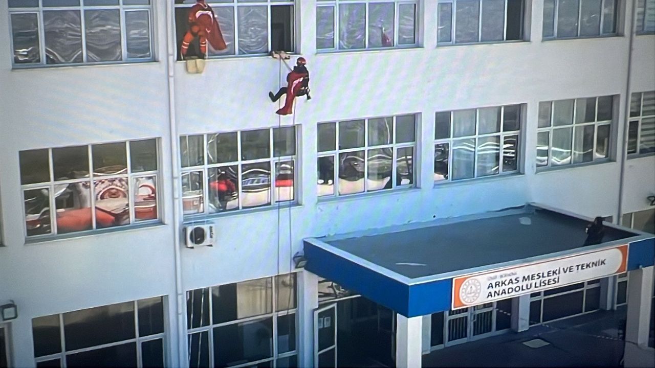 Okulda gerçekleştirilen son tatbikat, adeta bir gerçeği yansıtıyordu. Senaryo gereği okulda çıkan yangın ihbarı üzerine, itfaiye araçları, ambulanslar ve arama kurtarma ekipleri hızla olay yerine sevk edildi. Öğrenciler, okulun tahliyesinden yangın söndürme çalışmalarına, dumandan etkilenenlerin kurtarılmasına kadar her aşamada aktif rol aldı.