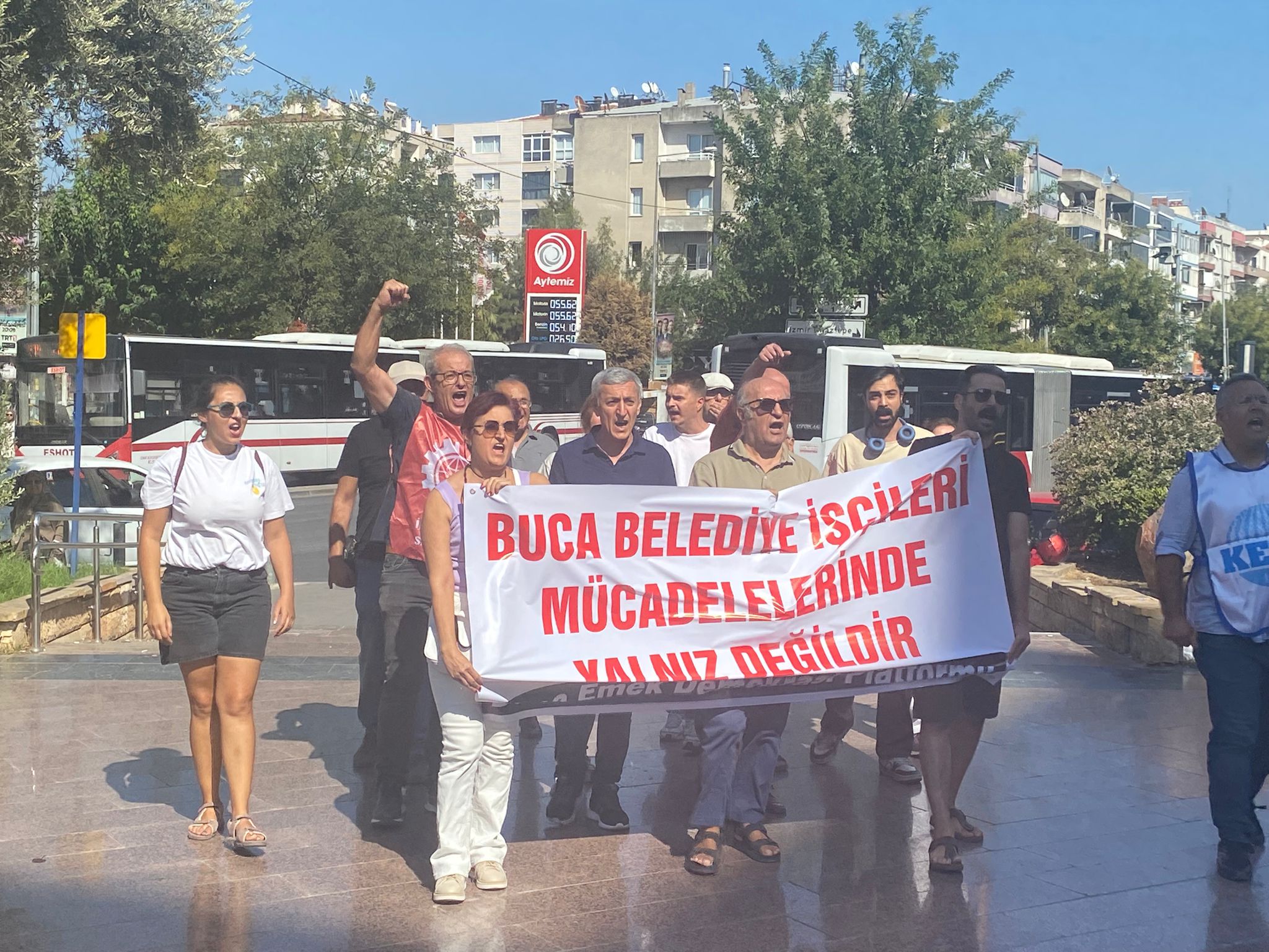 Belediye yönetimine sert eleştirilerde bulunan Disk Genel İş 6 No’lu Şube Başkanı Değer Yıldız, “Bu güne kadar bu belediyelerde işçilerle hareket edildi. İşçi sınıfı bu güne kadar karşı tarafı dinleyen ve karşı tarafı anlayan haline geldi. Alın terinin karşılığını her ayın maaş günü geldiğinde almayı düşünür. O yüzden bu ülkede bir şeye son vermek gerekiyor. Kimin aklına tasarruf geliyorsa başta iktidar olmak üzere muhalefetteki yerlerde de aynı mantık geçerli, Herkes tasarrufu işçiden yapıyor. Madem paranız yok madem başkan olamayacaksınız bu koltuğu terk edin. Sınıf mücadelesinde hep söylediğim bir şey var. Bu mücadelenin gücü işçilerdir. Bugünden itibaren Buca Belediyesi sınırları içerinde kime haksızlık yapılırsa her türlü mücadeleyi vermeye devam edeceğiz” sözlerine yer verdi.