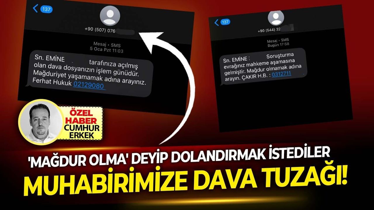 SON MÜHÜR/Cumhur Erkek-Teknolojiyi kullanarak vatandaşları ağlarına düşürmeye çalışan dolandırıcılar, bu kez yargı mekanizması üzerinden muhabirimizi hedef aldılar Birçok vatandaşa aynı anda kısa mesaj(SMS), gönderen dolandırıcılar, kişilerin adına açılmış hayali davalar veya soruşturma dosyaları olduğunu söyleyip milyonlarca lira vurgun yapıyorlar.