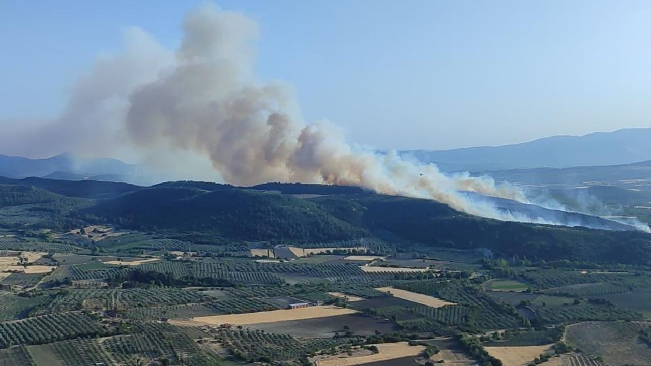 İzmir Orman Bölge Müdürlüğü'nün koordinasyonu çerçevesinde; 7 helikopter, 3 uçak, 3 dozer ve 14 su ikmal aracının yangına müdahale ettiği öğrenildi. Ekiplerin sayısının artırıldığı öğrenilirken, alevlerle mücadele sürüyor.