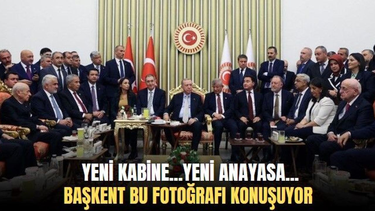 ''Terörsüz Türkiye'' sürecinde ''Cumhur İttifakı ve DEM Parti'yle birlikte yol alacağız'' mesajı veren Cumhurbaşkanı Erdoğan'ın merkezde olduğu fotoğraf, yeni Anayasa tartışmalarını da gündeme getirdi.