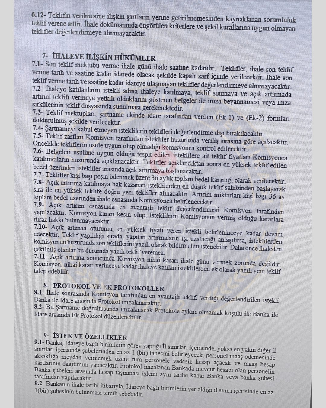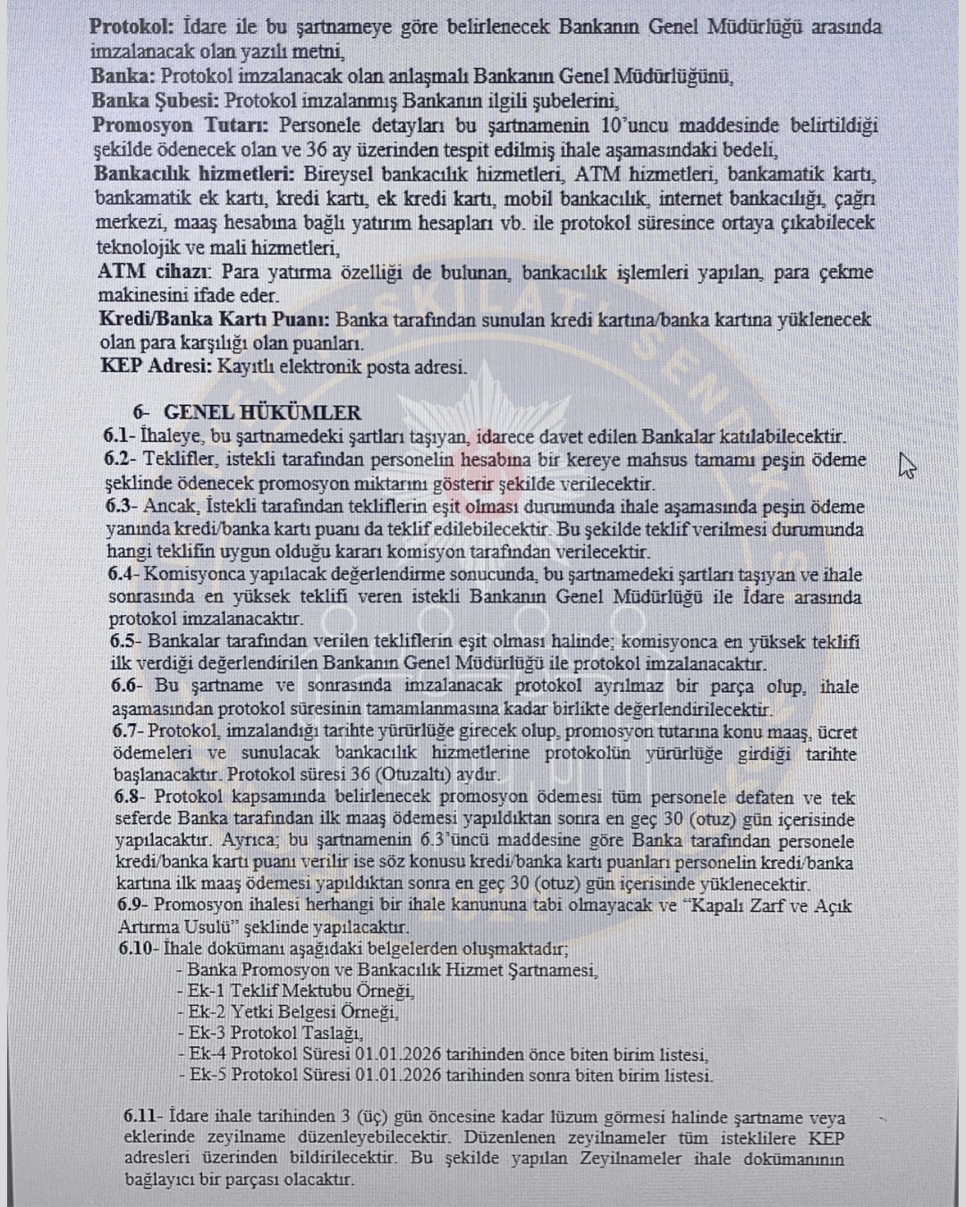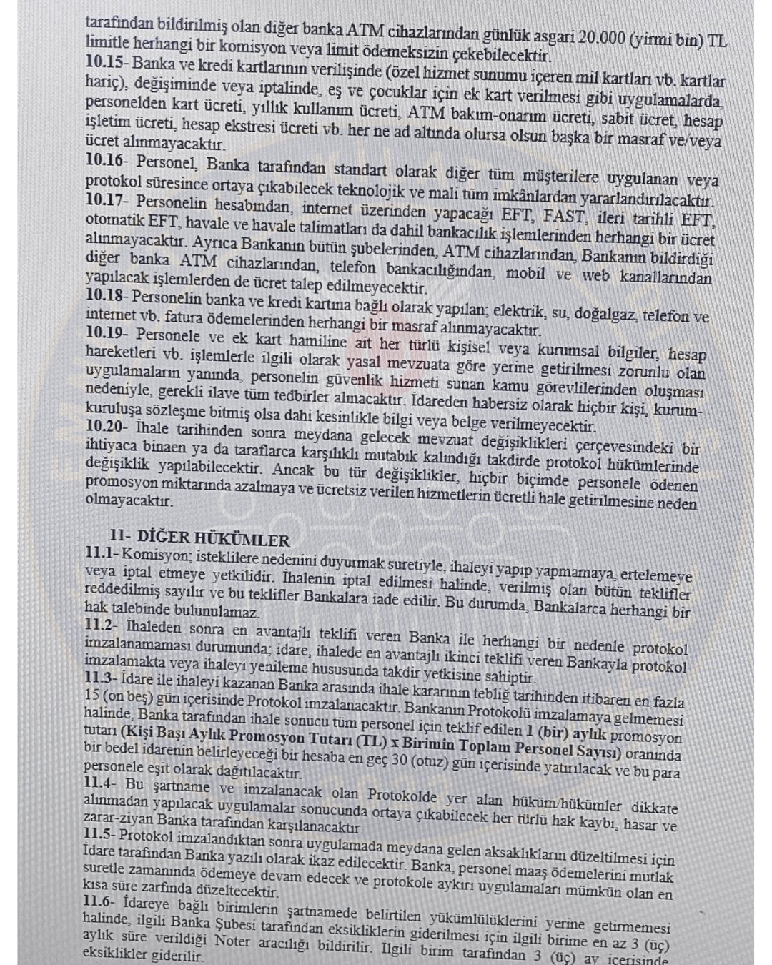 Şartnamenin 10.15 ila 10.20’nci maddeleri arasında, personel lehine önemli bankacılık düzenlemeleri yer aldı.