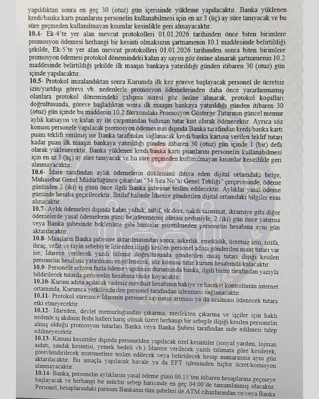 Protokol imzalandıktan sonra promosyon ödemeleri 30 gün içerisinde personel hesaplarına aktarılacak.