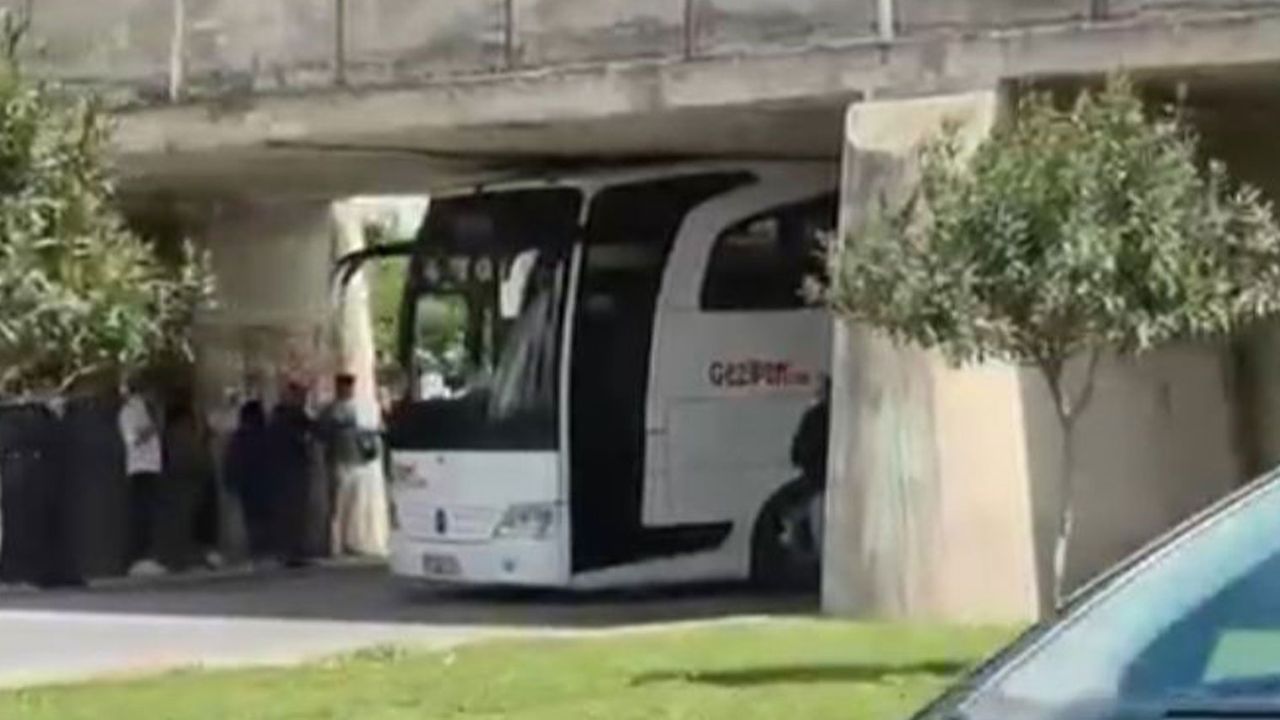 Tarsus'ta otobüs köprü altına sıkıştı