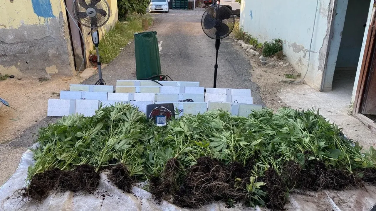 Operasyonda baskın yapılan depo olarak kullanılan bir yerin, çeşitli iklimlendirme düzenekleriyle donatılarak kapalı ortamda güneş görmeden saksılarla Hint keneviri yetiştirme alanına çevrildiği ortaya çıktı.