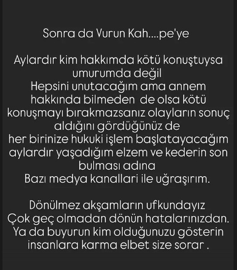 Ayrıca, Nebioğlu, Akpınar'ın topluma sevgi dersleri vermemesini isteyerek, "Söyleyin o erkeklere, omuzlarını düşürüp 'Benim hiçbir şeyden haberim yoktu' diyen adamlar gibi topluma bir zahmet sevgi dersleri vermesin, otursun evinde kitabını okusun." dedi.