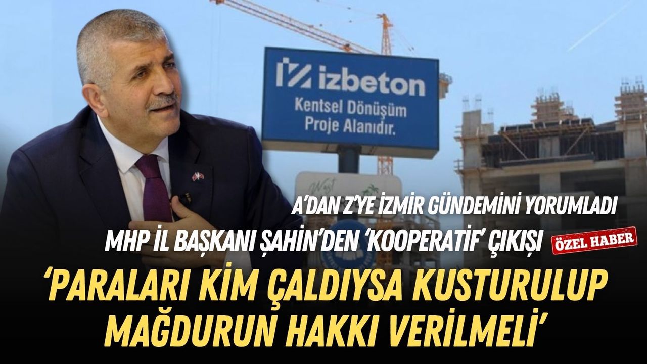 MHP İzmir İl Başkanı Şahin, kent gündeminin öne çıkan başlıkları arasında yer alan ‘Kooperatif Davaları’ hakkında da açıklamalarda bulundu. “Biz kandırıldık diyen 8 bin kooperatif mağduruna ne diyeceğiz?” diyerek yaşananlara tepki gösteren Şahin, “Bu konuya mağdurlar açısından bakacağız. ‘Belediye yapsın’ deniliyor ya ben belediyenin yapmasından yana da değilim. Belediye yapıyorsa yine bizim paralarımızla yapacak. Vatandaşın parasını birileri çaldı, bunu biz ödeyeceğiz. Vatandaştan parayı aldılar mı? Parayı kim aldıysa onları kusturacaklar, geri alacaklar o inşaatları yapacaklar. Niye benim paramla yapıyorlar? O zaman öteki kardeşlerimiz ‘Benim evimi de yap’ demez mi? Mağduriyet varsa o mağduriyeti yaratanlar kimlerse onlar kusturulup yapılacak. Yoksa ‘Belediye yapsın’ demek çözüm değil. 8 bin kişi var. Bu insanlar parayı ödediyse bu parayı kim yuttu, onlar kusturulacak. Karabağlar’da 2014’te adamların evini yıkmışlar. Şimdi kira yardımını 20 bin liraya çıkardılar diye seviniyorlar. Devlet neden bizim paramızdan insanlara kira yardımı yapıyor? Neden belediye dirayet gösterip insanların evlerini zamanında yapıp bitirmemiş. Bu kamu zararını kim yaratıyor? Kim devleti zarara uğratıyor? Bunun hesabı sorulmamalı mı? Ben cezaevinde olan birinin arkasından konuşmam, kişilerle bir işim yok. Bu parayı kim aldıysa, ‘Kooperatif kuruyoruz, para topluyoruz’ dümeni ile kooperatif kurup parayı kaybeden gereğini yapmayan kimse çağırılıp bunun ödenmesi lazım. Dolambaçlı laflara gerek yok” dedi.