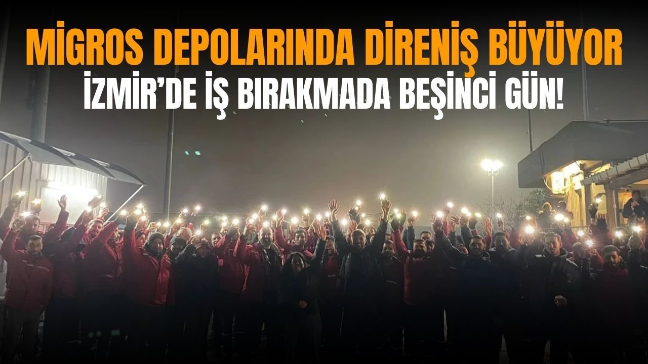 Son Mühür- İzmir’in Torbalı ilçesindeki Migros deposunda yaklaşık 700 işçi, işverenin yüzde 28’lik zam teklifini kabul etmeyerek başlattıkları iş bırakma eylemini beşinci gününde de sürdürüyor. Türkiye genelinde dikkat çeken eylemler kapsamında depo işçileri bugün de işbaşı yapmadı.
