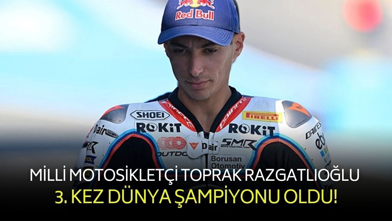 Son Mühür- Milli motosikletçi Toprak Razgatlıoğlu, Dünya Superbike Şampiyonası’nın (WSBK) 2025 sezonunda kariyerinin üçüncü dünya şampiyonluğunu ilan etti. İspanya’nın Jerez Pisti’nde düzenlenen son yarışta üçüncü olan Toprak, üst üste ikinci kez şampiyonluk sevinci yaşadı.