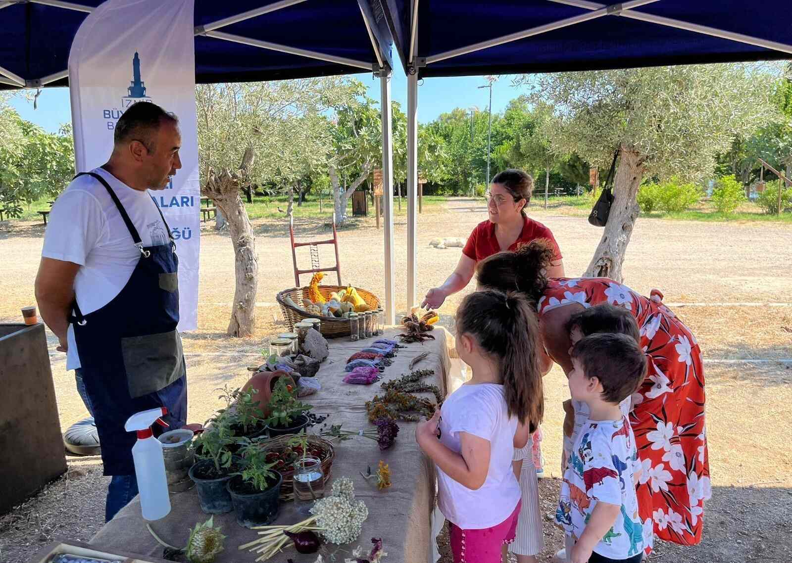 Park ve Bahçeler Dairesi Başkanlığı’nın yürüttüğü “Parkta Etkinlik Var!” projesi çerçevesinde İnciraltı Terapi Bahçesi'nde düzenlenen programa katılan çocuklar, doğayla birebir temas kurarak tohum ekimi ve fide dikimi gibi uygulamaları deneyimledi.