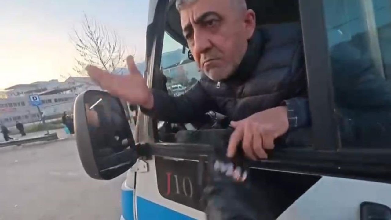 Bursa'nın Yıldırım ilçesinde, seyir halindeki motosikletli ile minibüs şoförü arasında gergin bir olay yaşandı. Motosiklet sürücüsü Mert A., önüne kırdığı iddiasıyla minibüs şoförüyle tartışmaya girdi.