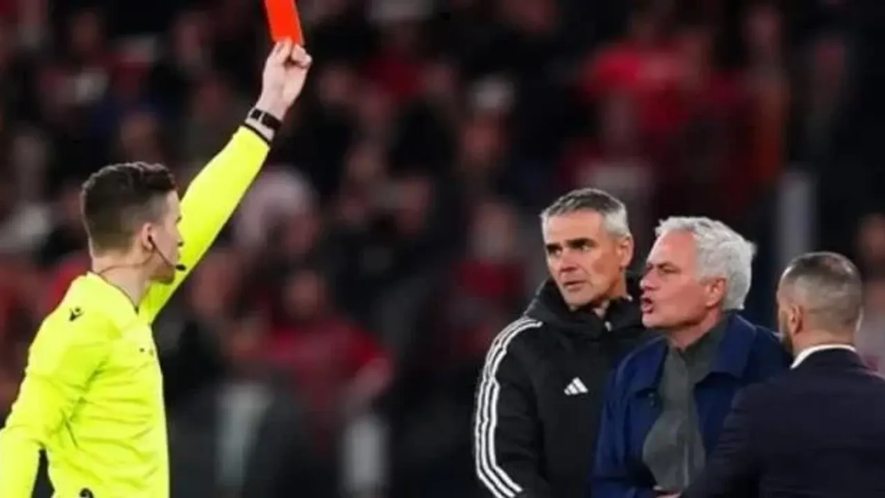 Son Mühür - Portekiz Premier Lig’in 25. haftasında Benfica, sahasında lider Porto ile 2-2 berabere kaldı. Ancak mücadelenin son bölümünde yaşanan gelişmeler karşılaşmanın önüne geçti. Benfica Teknik Direktörü Jose Mourinho, beraberlik golü sonrası yaptığı hareket nedeniyle kırmızı kartla cezalandırıldı.