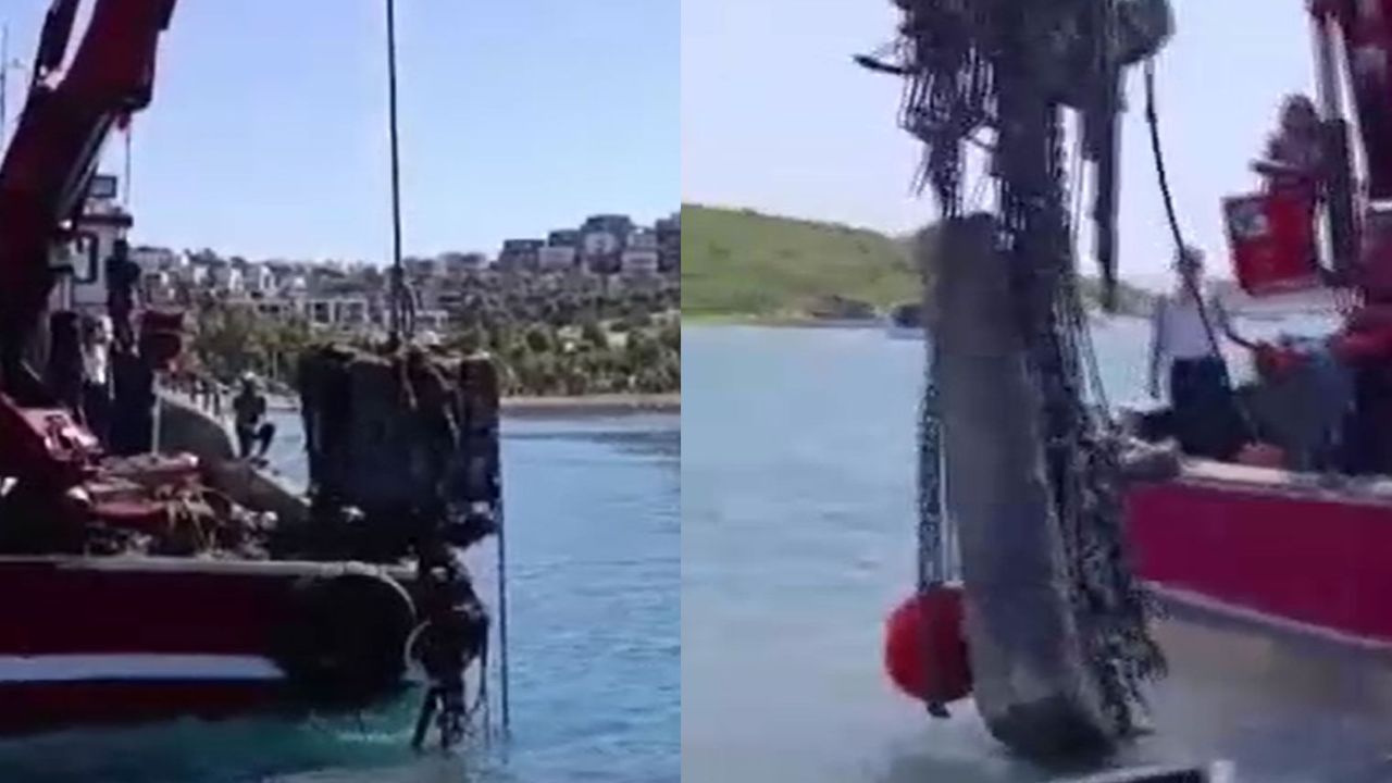 Denizden çıkarılan devasa atık yığını karaya taşındı