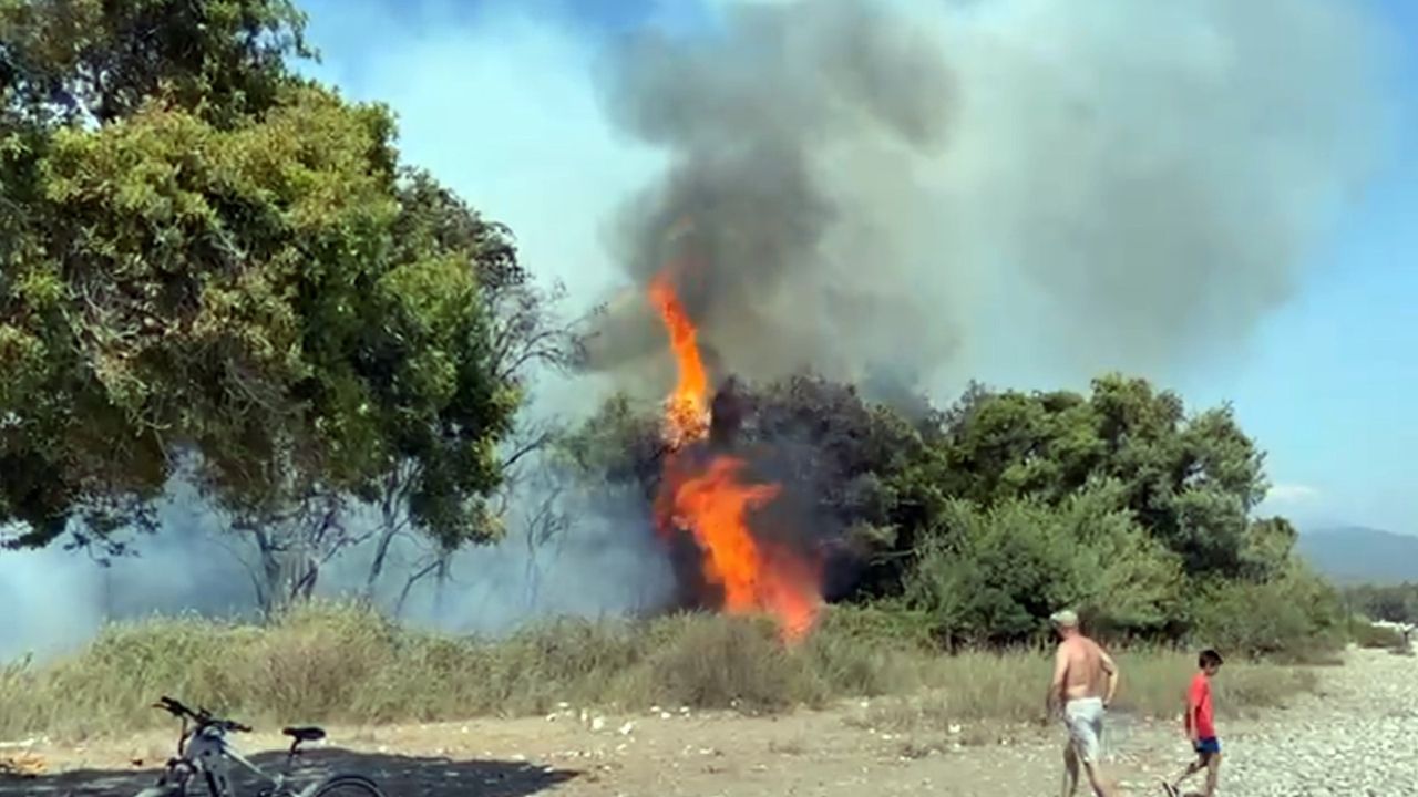 Tatilciler yangına ilk müdahaleyi yaptı