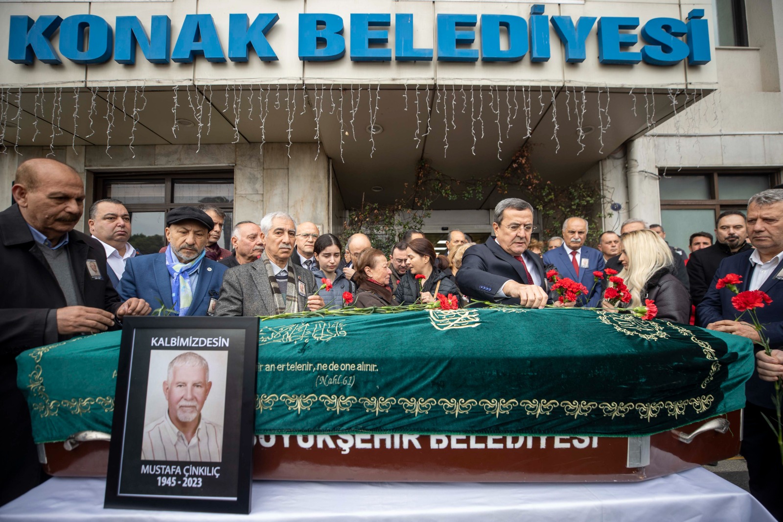 Mustafa Cinkılıç, Konak Belediyesi önünden son yolculuğuna kırmızı karanfillerle uğurlandı.