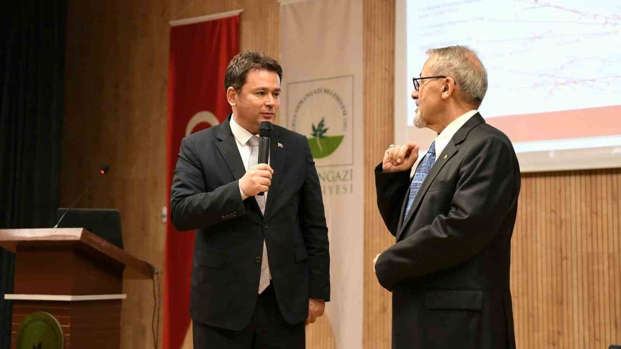 Söyleşinin sonunda, Osmangazi Belediye Başkanı Erkan Aydın, Prof. Dr. Naci Görür’e teşekkür plaketi takdim etti.
