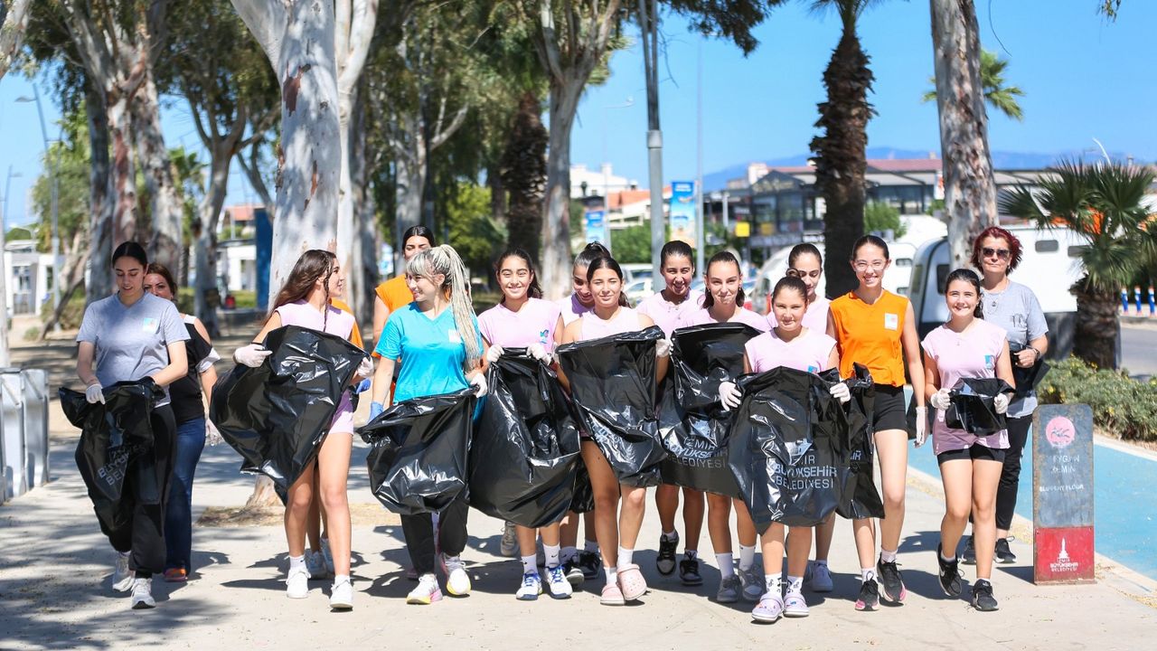 Altıevler Mahallesi'ndeki Bakü Parkı'nda toplanan Narlıdere Belediyespor'un genç voleybolcuları, antrenörleri eşliğinde Sahilevleri kıyı şeridine geçti. Kıyı boyunca özenle çöp toplayan sporcular, çevreye ve topluma karşı sergiledikleri duyarlı davranışla takdir topladı.