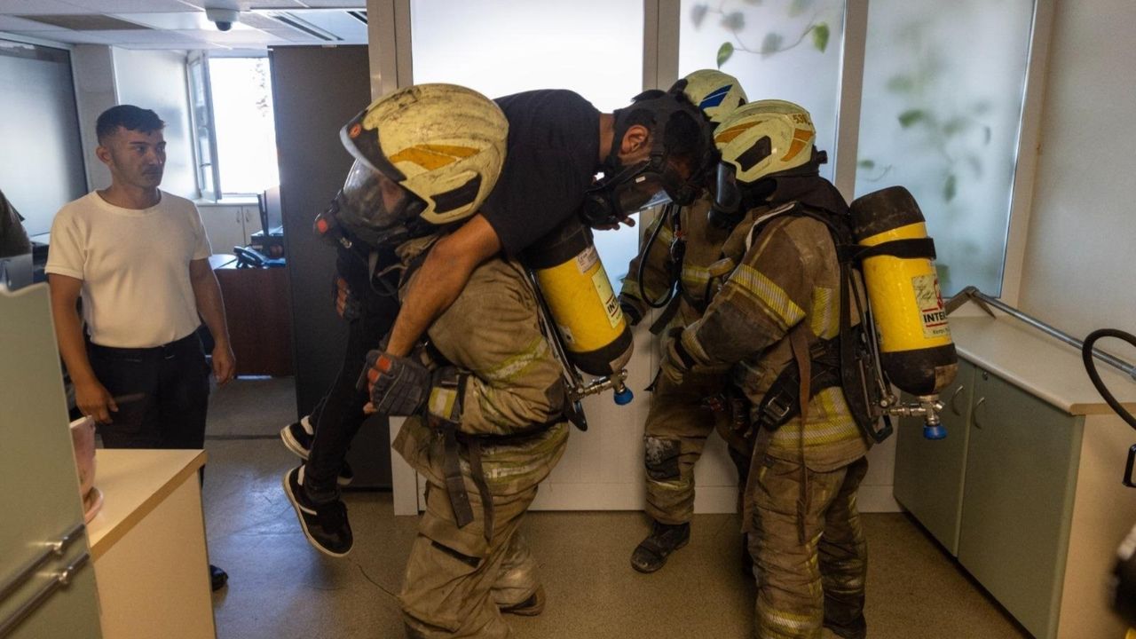 Son Mühür/Beste Temel- İtfaiye Haftası kapsamındaki etkinlikler çerçevesinde, İzmir İtfaiyesi ile İZSU Genel Müdürlüğü Afet ve Acil Durum Yönetimi Birimi iş birliğinde gerçekleştirilen tatbikat, Konak'taki İZSU Genel Müdürlüğü binasında büyük bir başarıyla tamamlandı. Yangın söndürme, tahliye ve kurtarma senaryolarının uygulandığı bu zorlu prova, ekiplerin koordinasyon ve hazırlık seviyesini bir kez daha gözler önüne serdi. Senaryo gereği binada mahsur kalan, aralarında bir engelli vatandaşın da bulunduğu dört kişinin kurtarılması, İzmirlilere yönelik hizmet kalitesinin ve güvenliğin üst düzeyde olduğunu kanıtladı.
