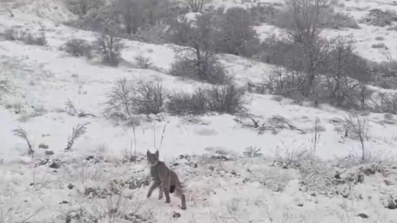Erzincan’ın Refahiye ilçesinde nesli tükenme tehdidi altında olduğu için Dünya Doğa ve Doğal Kaynakları Koruma Birliği (IUCN) kırmızı listesinde yer alan vaşak görüntülendi.