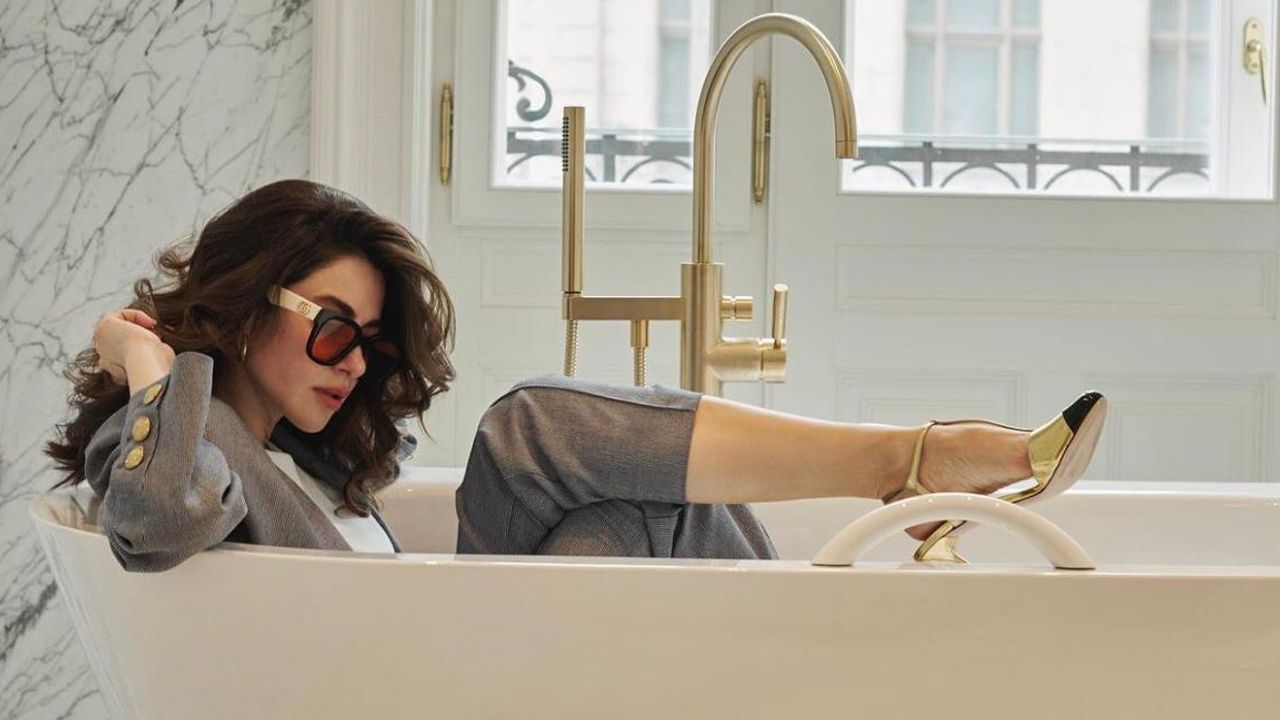 Ünlü bir markanın ödül törenine katılan Cavadzade, siyah ve derin göğüs dekolteli elbisesiyle tüm dikkatleri üzerine çekti.