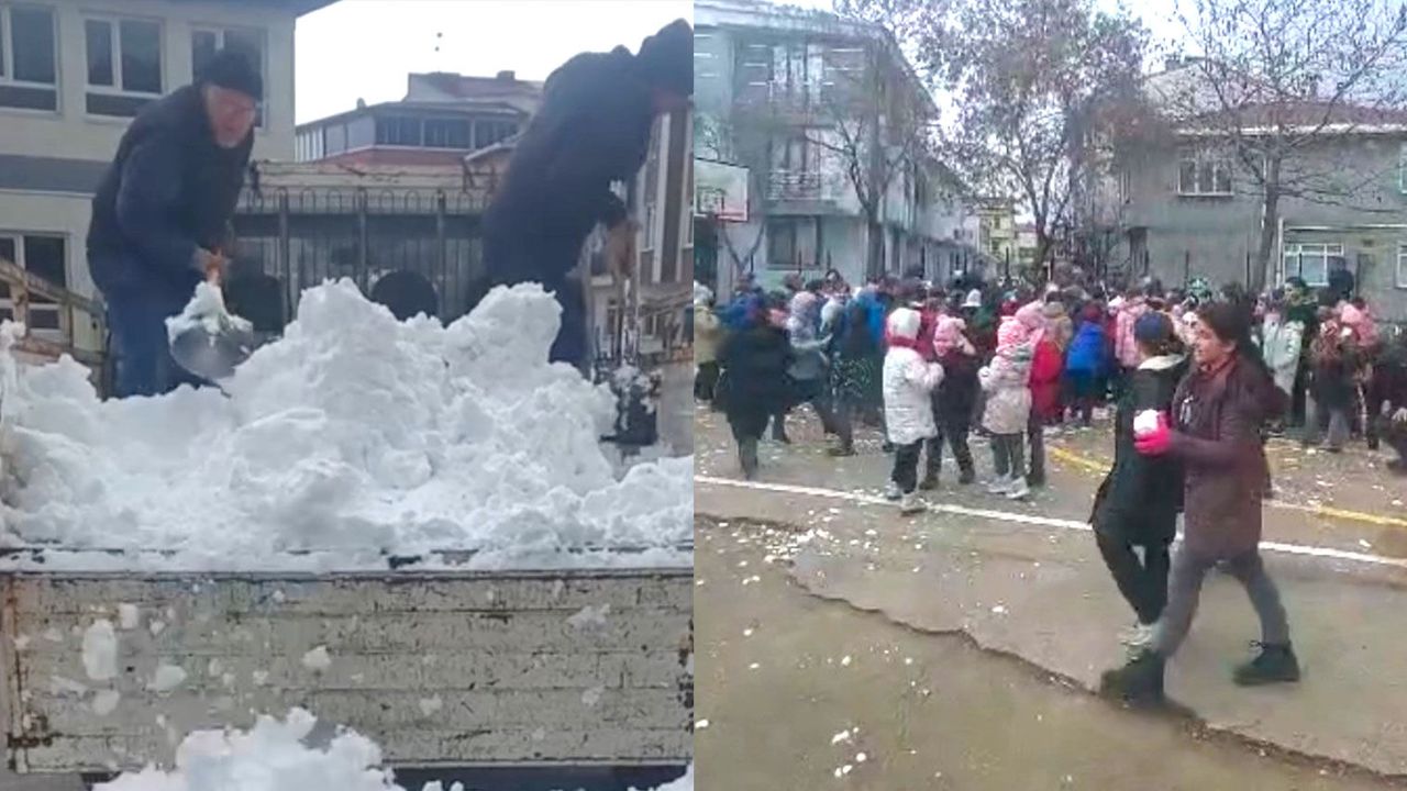 Okul müdürü Aytaç Kılıç, öğrencilerin kar özlemini gidermek ve onlara eğlenceli bir gün yaşatmak amacıyla harekete geçti. Çevredeki kar birikintilerinden toplanan kar, kamyonetle okul bahçesine taşındı. Beyaz örtüyle kaplanan okul bahçesi, öğrencilerin sevinç çığlıklarıyla yankılandı.