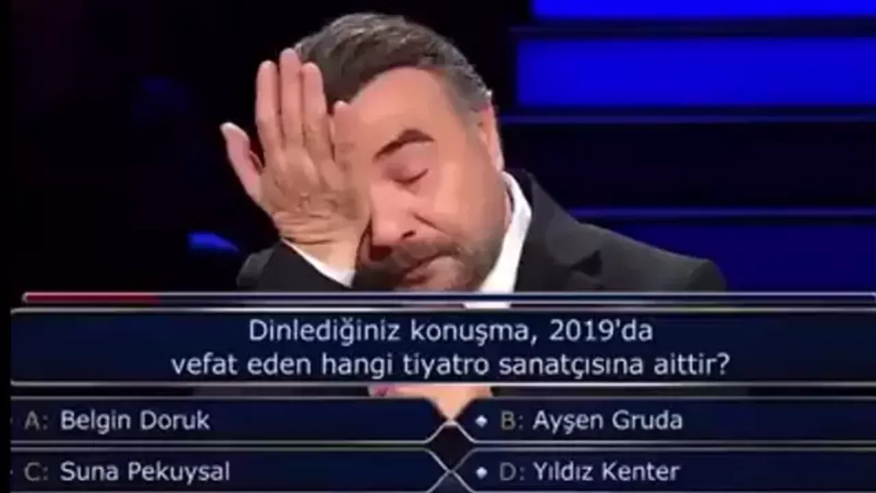 Yıllardır ekranlarda yer alan Kim Milyoner Olmak İster yarışmasında yaşanan bir an, izleyicileri duygulandırdı. Sunucu Oktay Kaynarca, 2019 yılında hayatını kaybeden usta oyuncu Yıldız Kenter ile ilgili bir sorunun yarışmacıya sesli olarak dinletildiği sırada gözyaşlarını tutamadı. Kenter'in şiir okuduğu esnada yarışmacıya şu soru yöneltildi: