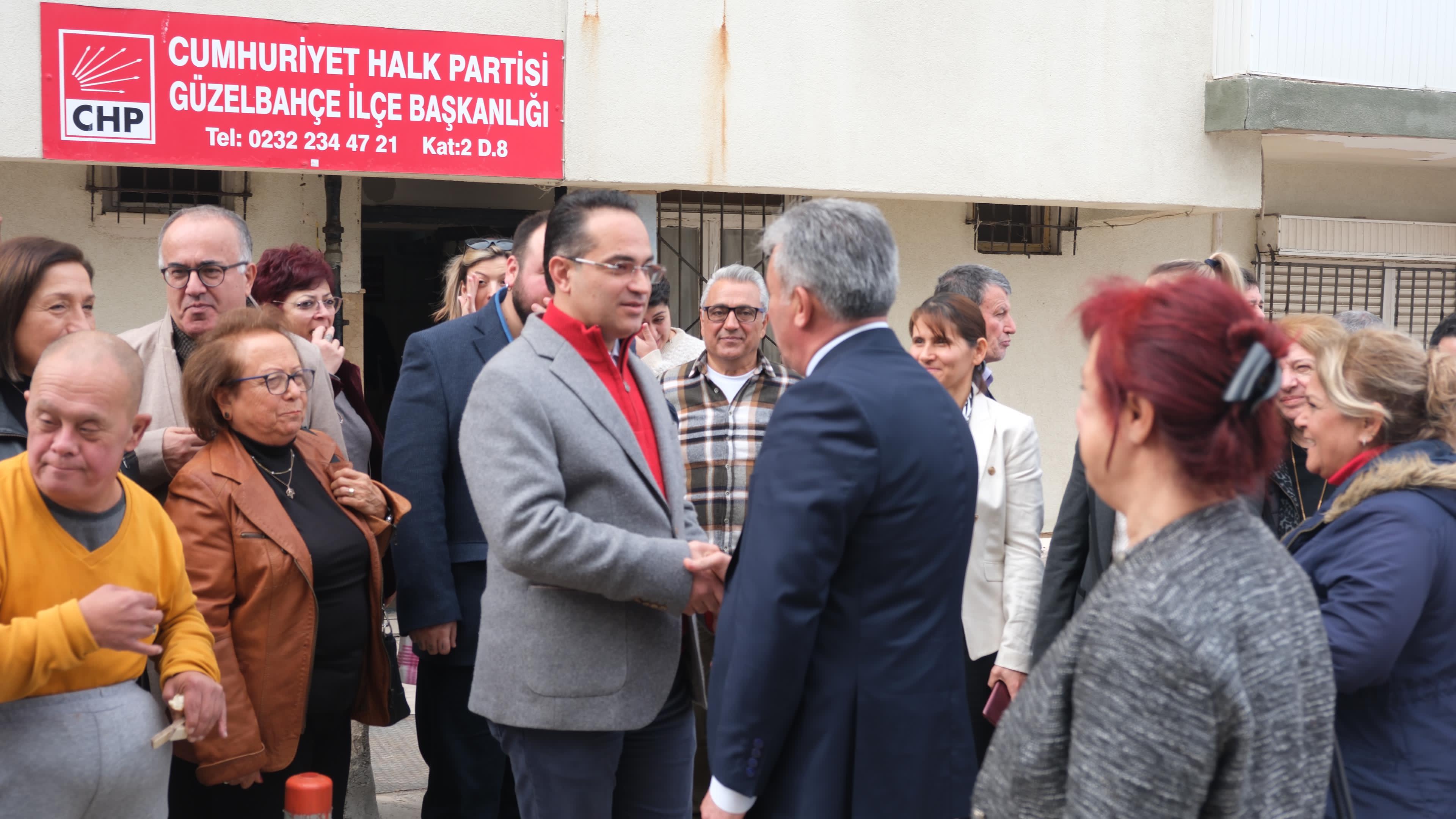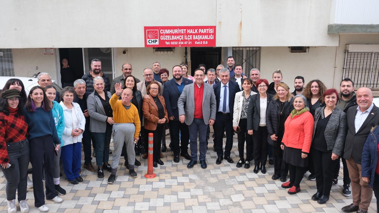 CHP Güzelbahçe Örgütü ziyaretinde Atila’ya CHP Güzelbahçe İlçe Başkanı Devrim Seyrek, Güzelbahçe Belediye Başkanı Mustafa İnce, Gençlik ve Kadın Kolları, Meclis Üyeleri, Belediye Başkan Aday Adayları eşlik etti.