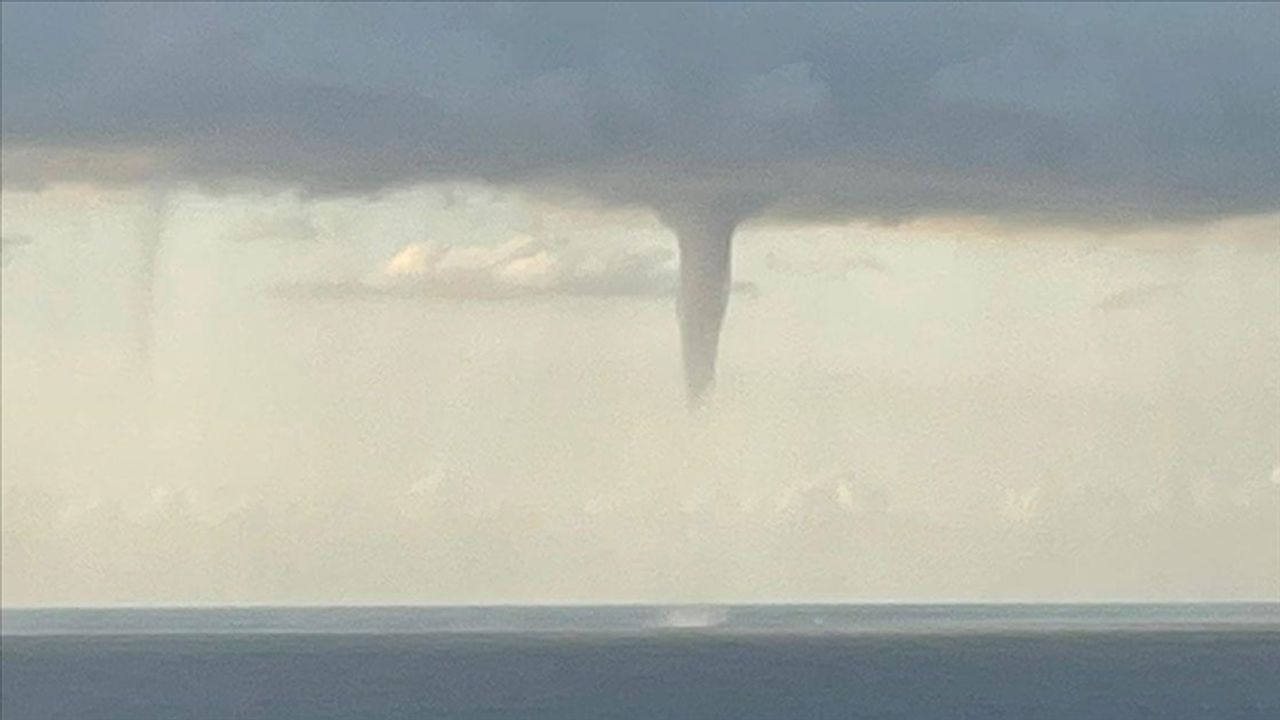 İlçede aralıklarla devam eden sağanak yağışın ardından deniz üzerinde bir hortum oluştu.
