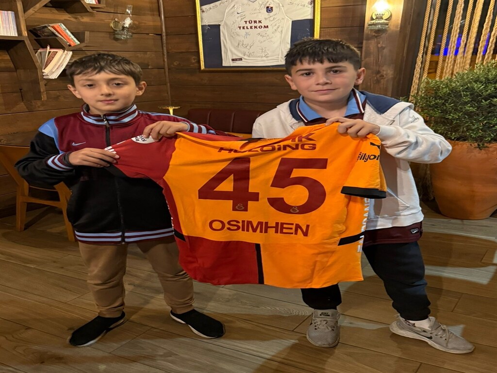 Karşılaşmanın ardından 11 yaşındaki Trabzonspor taraftarı Mert Yılmaz, sahada dikkatini çeken Osimhen’e seslendi. Genç oyuncu, Mert Yılmaz’ın çağrısına kayıtsız kalmadı ve formasını ona uzattı. Küçük taraftarın sevinci kısa sürede yerini bir başka heyecana bıraktı. Mert Yılmaz, kendisine verilen formayı, Almanya’nın Bremen kentinden özel olarak bu maç için Trabzon’a gelen Şahin Karaarslan’a verdi.