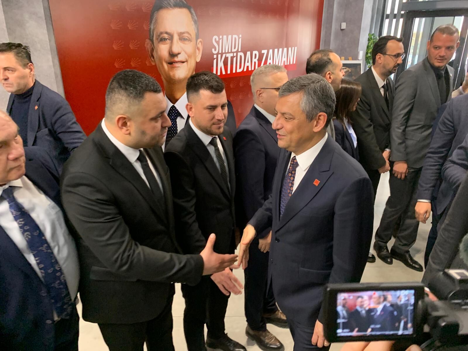 Törenin ardından partisinin İzmir İl Başkanlığı’na geçen Özel, burada ilçe başkanları ve parti yöneticileri tarafından kapıda karşılandı.