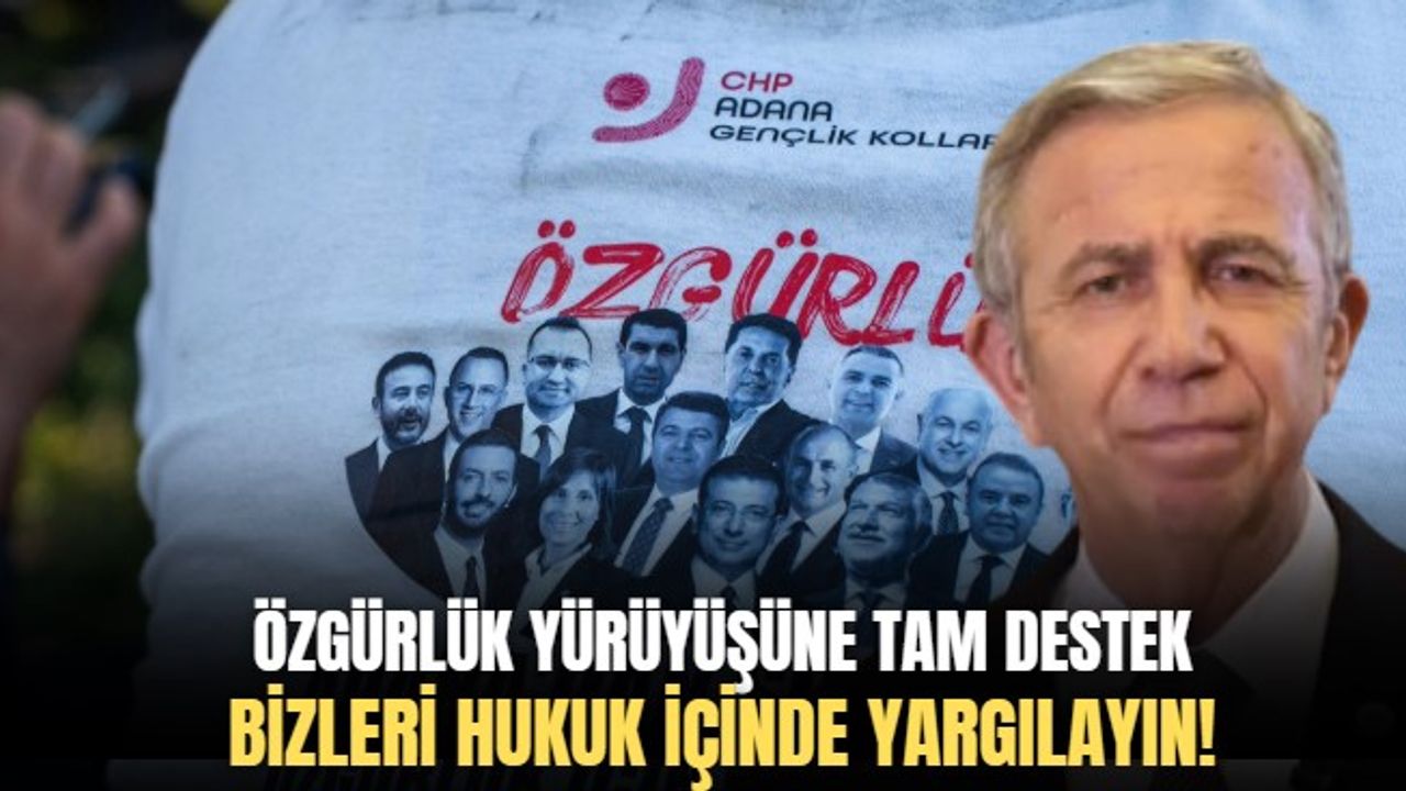 "Adana'dan başlayınca özgürlük yürüyeceği günün 21. gününde 500 kilometre yürüdü gençler buradan İstanbul'a kadar. Tek dertleri 'adalet'.’’ Diyen Mansur Yavaş,