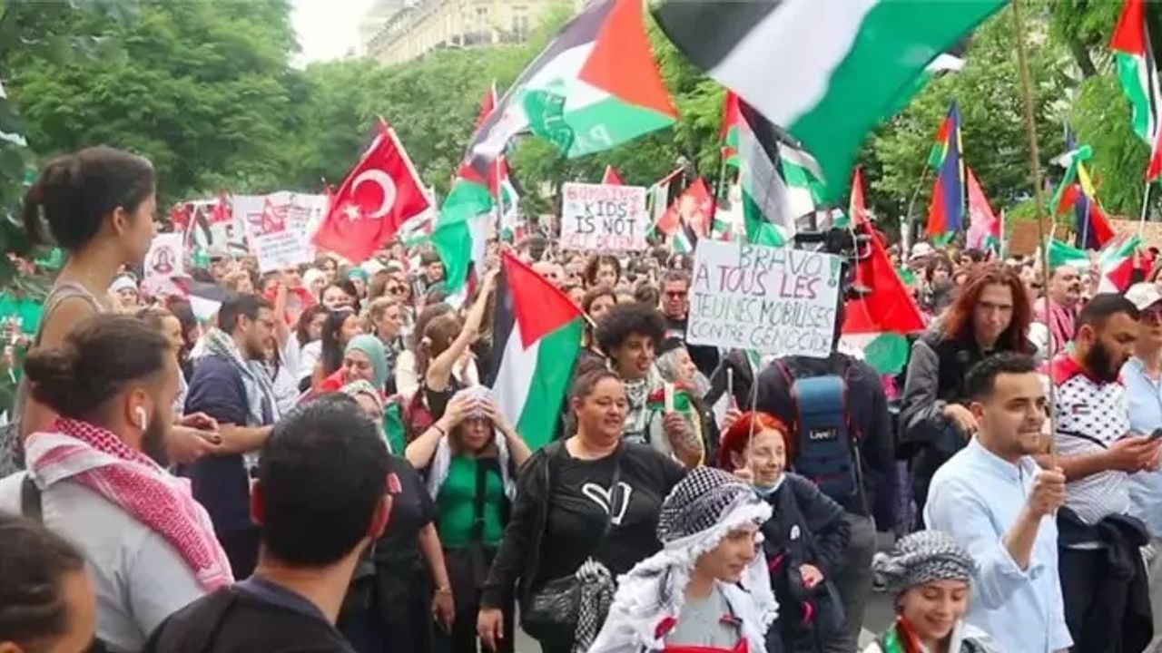 Voltaire Bulvarı üzerinden Nation Meydanı'na kadar yürüyen Filistin destekçileri, sık sık Gazze'de ateşkesin sağlanması ve soykırımın durdurulması yönünde sloganlar attı. Göstericiler, “Filistin'de soykırımı durdurun”, “Acil ateşkes sağlanmasını istiyoruz”, “Faşist Netanyahu ve onun iş birlikçisi Fransa Cumhurbaşkanı Macron”, “Döktüğünüz Filistin kanı yeter”, “Masum çocukları öldürmekten vazgeçin”, “Yaşasın soylu Filistin halkının direnişi” yazılı pankartlar taşıdı.