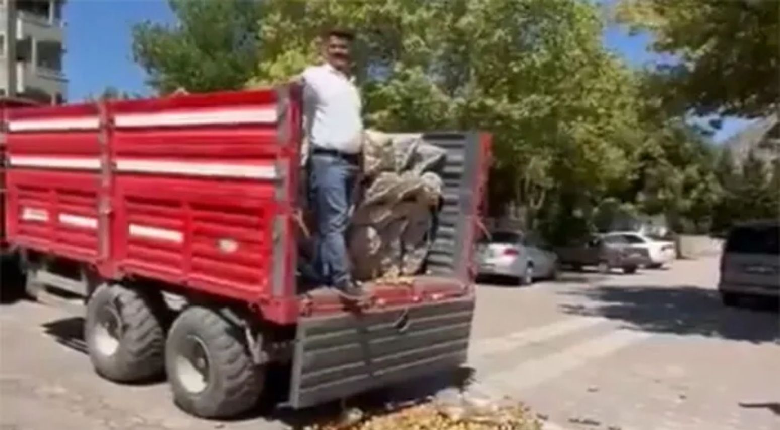 Yozgat’ın Aydıncık ilçesine bağlı Kazankaya köyünde çocuk yaştan itibaren çiftçilik yaparak geçimini temin eden CHP Aydıncık İlçe Başkanı Sadık Erdoğan, kendisi ile birlikte diğer çiftçilerin, ürettikleri soğan ve patatese maliyetinin altında dahi alıcı bulamamaları üzerine römorkuna doldurduğu 150 çuval patatesi köy meydanında sokağa döktü. Erdoğan, vatandaşların istediği kadarını ücretsiz alabileceklerini belirtti.