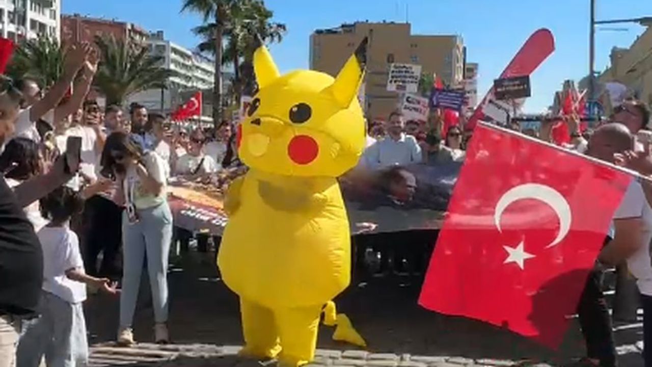 CHP Gençlik Kolları üyeleri, miting öncesinde Konak İskelesi önünde toplanarak “Hak, hukuk, adalet” sloganları eşliğinde Gündoğdu Meydanı’na yürüdü. Yürüyüşe renkli görüntüler de damga vurdu. Sosyal medyada, polis müdahalesinden kaçarken görüntülenerek fenomen haline gelen Pikachu, bu kez İzmir’de görüldü. Gençler, Pikachu ile bol bol fotoğraf çektirdi.
