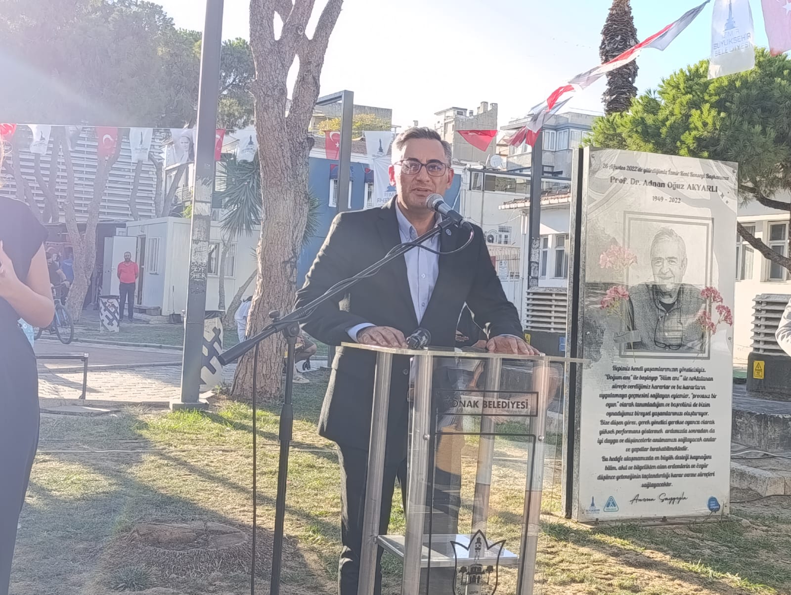 Son Mühür/Sercan Engerek- İzmir Kent Konseyi eski başkanlarından Prof. Dr. Adnan Oğuz Akyarlı, ölümünün üçüncü yılında adına açılan parkın önünde anıldı. Prof. Dr. Adnan Akyarlı’nın kızı Ayşin Akyarlı Savatlı yaptığı konuşmada babasının sadece bir bilim insanı değil, aynı zamanda insanlığa değerleriyle ışık tutmuş bir rehber olduğunu vurguladı. Savatlı, “Babam bilimle, akılla şekillendirip erdemle taçlandırdığı kişiliğiyle toplumun rehberi olmuştu. Onu her geçen gün artan özlem, sevgi, saygı, hayranlık ve minnetle anıyorum” dedi.