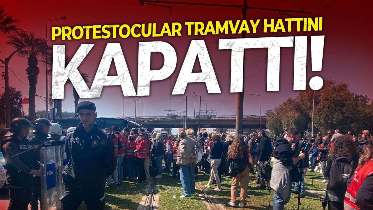Son Mühür / Erkan Doğan - İzmir Büyükşehir Belediyesi’ne ait Meslek Fabrikası’nın mahkeme kararı ile Vakıflar Genel Müdürlüğü’ne geçmesini ve binanın polis tarafından abluka edilmesini protesto eden kişiler, Halkapınar’daki tramvay hattını trafiğe kapattı.