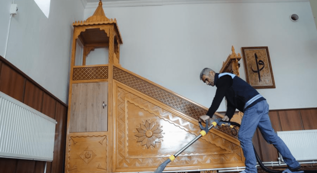 Camilerin halıları süpürülüp yıkandı, camlar silindi ve mihrap, minber ile kürsüler detaylı şekilde temizlendi. Ayrıca, dezenfeksiyon işlemleri de gerçekleştirerek camilerin hijyenik hale getirilmesi sağlandı.