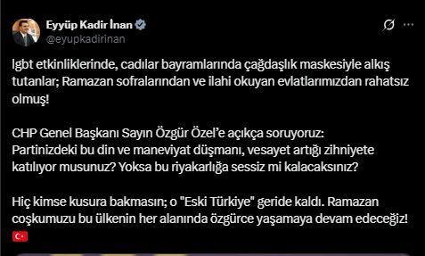“lgbt etkinliklerinde, cadılar bayramlarında çağdaşlık maskesiyle alkış tutanlar; Ramazan sofralarından ve ilahi okuyan evlatlarımızdan rahatsız olmuş!