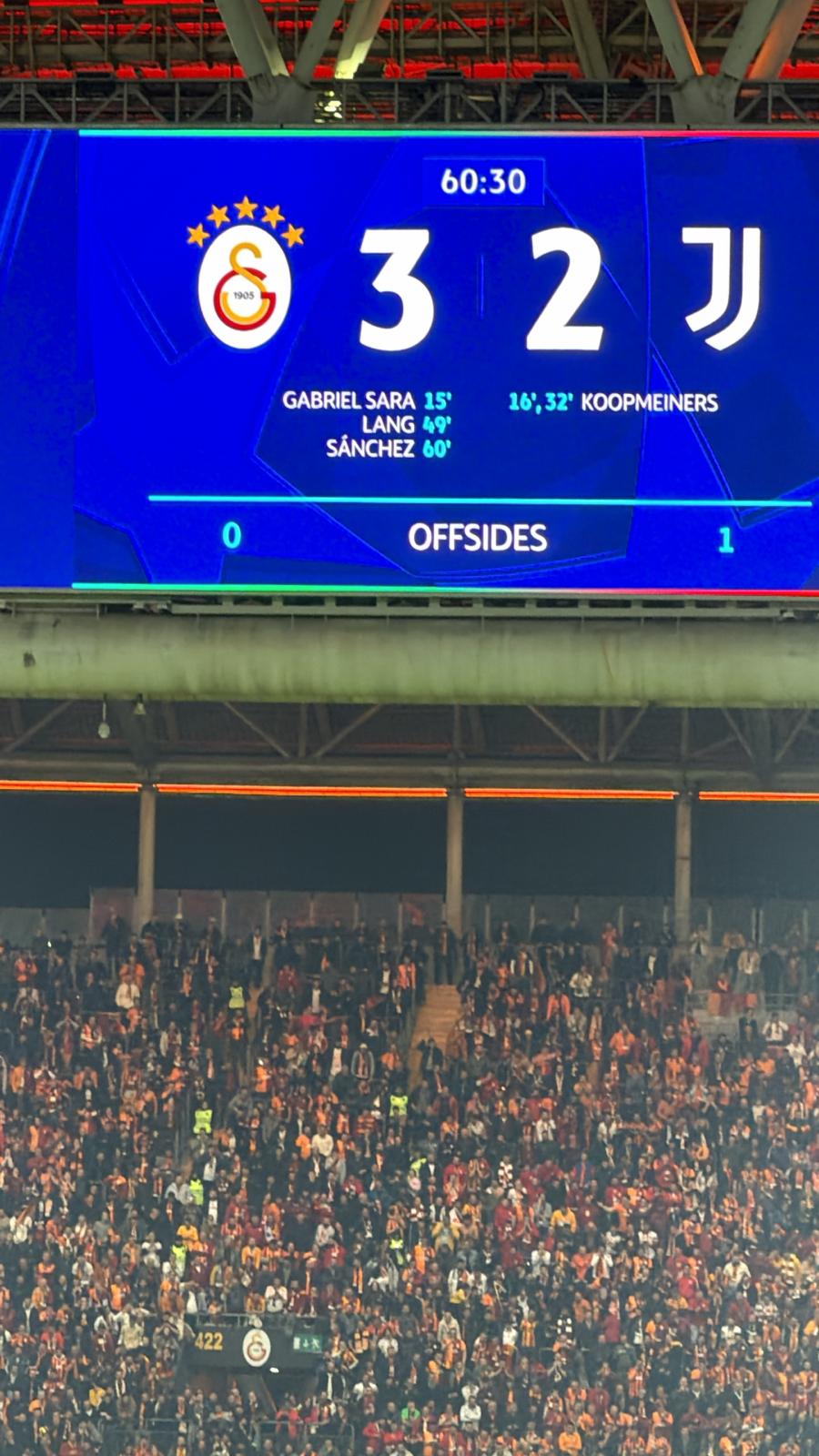 Mücadelenin 60. dakikasında RAMS Park’ı adeta yerinden oynatan bir an yaşandı ve temsilcimiz Galatasaray bir kez daha üstünlüğü ele geçirdi. Rakip yarı alanın tehlikeli bir noktasında kazanılan serbest vuruşta topun başına geçen Gabriel Sara, adrese teslim, enfes bir orta kesti. Ceza sahası içinde savunma oyuncularının arasından çok iyi yükselen Davinson Sanchez, yaptığı sert ve düzgün kafa vuruşuyla meşin yuvarlağı ağlarla buluşturarak skoru 3-2’ye getirdi.