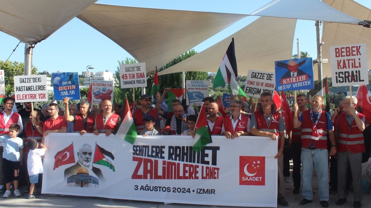 Hamas Lideri İsmail Haniye'nin suikast ile şehit edilmesinden önce yaptığı “İsrail hapishanelerinde esir tutulan Filistinlilere destek olmak ve Gazze'de yaşanan soykırım için meydanlara inme çağrısı”na Saadet Partisi’nden karşılık geldi. 81 ilde eş zamanlı olarak düzenlenen eylemlerle zulme karşı meydanlara inen Saadet Partililer, Heniyye’nin son çağrısını yerine getirdi. Saadet Partisi İzmir Teşkilatı Konak Meydanı’nda toplanarak işgal rejiminin Gazze'de sürdürdüğü soykırımı lanetledi. "Şehitlere rahmet, zalimlere lanet" sloganıyla düzenlenen eyleme katılan partililer, ellerinde Filistin bayrakları ve Filistin'e destek mesajları içeren dövizler taşıyarak İsrail vahşetine tepki gösterdi.